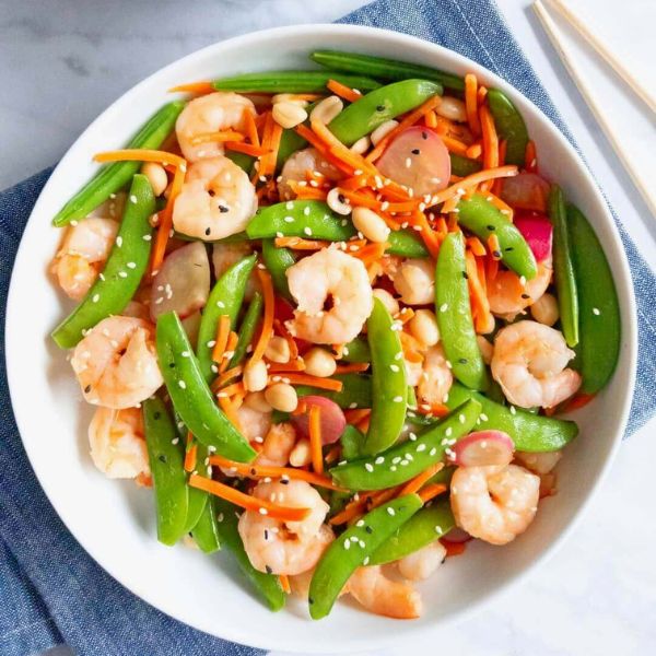 Frozen shrimp thaw in minutes and cook even faster. Half a pound (around $4) tossed with snap peas, a bag of frozen stir-fry vegetables for about $2, and whatever sauce you prefer. The entire meal takes 15 minutes, start to finish. Under $8 from fridge to table. Frozen shrimp work perfectly for nights when you forgot to plan dinner. They’re already peeled and deveined, which saves the annoying prep work. Serve over rice or skip the carbs and eat it straight from the pan. The snap peas add a satisfying crunch you get from takeout without the $40 bill.