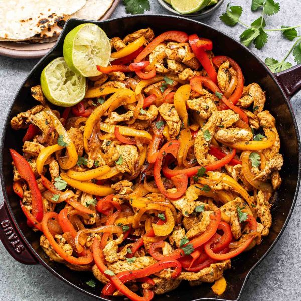 One chicken breast, one bell pepper, and half an onion cook up into sizzling fajitas in under 15 minutes. Total: around $5. I slice the chicken thin so it cooks fast, and season everything with chili powder, cumin, and garlic powder from my spice cabinet. Four tortillas at about $2.50/pack gives you two each, and you’ll have extras for breakfast burritos later. The key is getting your skillet really hot before adding the chicken so you get slightly charred restaurant flavor. Top with whatever you have, or keep it simple with just lime juice.