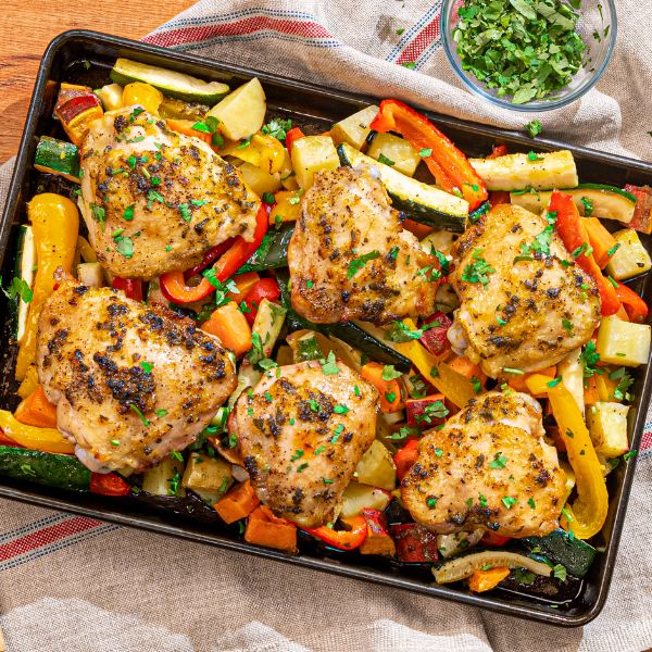 1. Lemon Herb Chicken Thighs with Roasted Vegetables