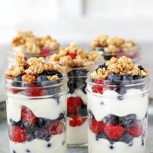 Layer plain Greek yogurt with fresh berries and a handful of chopped almonds or walnuts. A large container of plain Greek yogurt costs around $5 and gives you 8 servings, berries roughly $4, and nuts maybe $6 for a bag that lasts weeks. Each parfait comes in under $2 and packs 15g of protein. The fiber from berries and healthy fats from nuts slow down sugar absorption. Takes 3 minutes to assemble. Skip the granola since it’s usually loaded with added sugar. If you want crunch, add a tablespoon of unsweetened coconut flakes or a few sunflower seeds instead.