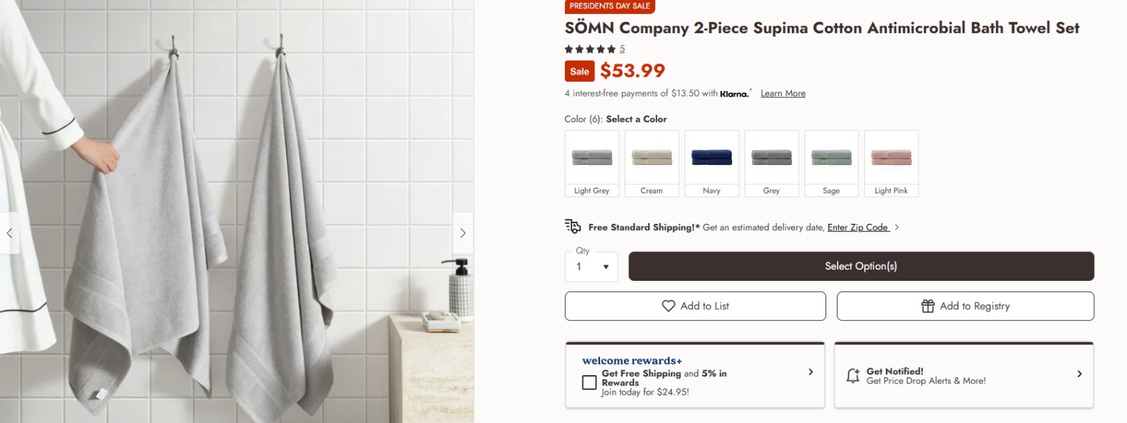 You can either purchase one towel for $45, or choose a set of two (or four). There is also a full set available that includes two bath towels, two washcloths, and two hand towels. The towel comes in three colors: grey, white, and sky blue. However, I have noticed they are out of stock frequently, so if you’re able to purchase while they’re available, I believe this is a great choice if you’re looking for a towel that feels luxurious, absorbs moisture quickly, dries in half the time, and reduces the frequency of your laundry.