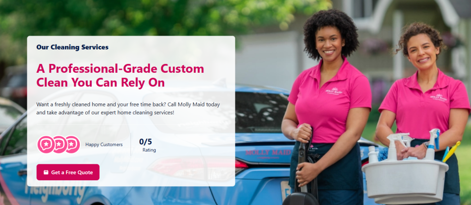 Molly Maid has been around for decades, and I think they get a lot of love because it operates as a traditional cleaning company rather than a marketplace. Instead of hiring individual cleaners, you get a professional crew that follows a structured cleaning process.