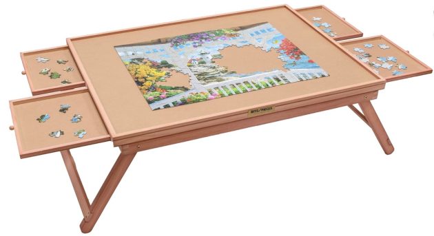 This foldable puzzle board is designed for convenience, featuring four drawers to serve as puzzle piece sorting trays. Its 25″ x 34″ size accommodates up to 1500 piece puzzles, making it ideal for enthusiasts looking for large puzzle tables for adults with drawers.