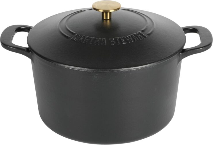 Hurry and grab the MARTHA STEWART Gatwick 7-Quart Enamel Cast Iron Dutch Oven in Matte Black for only $46.56!