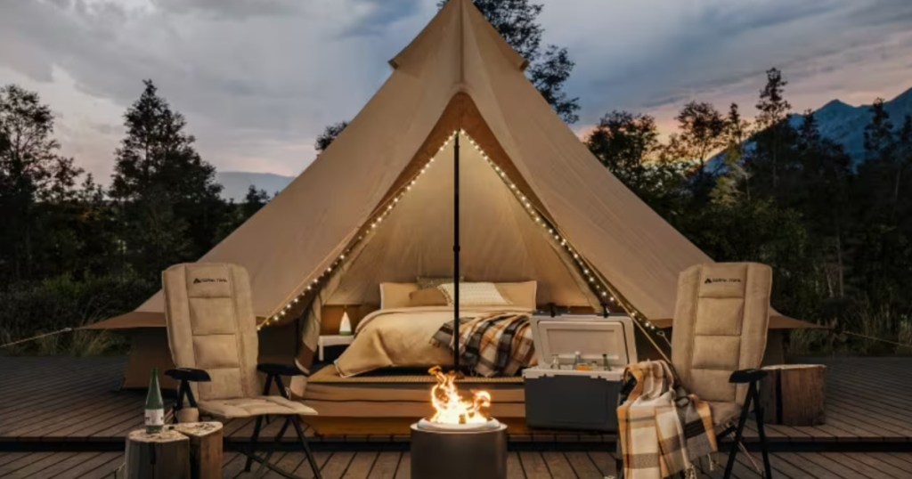 Ozark Trail 8-Person Family Yurt Tent – with string lights